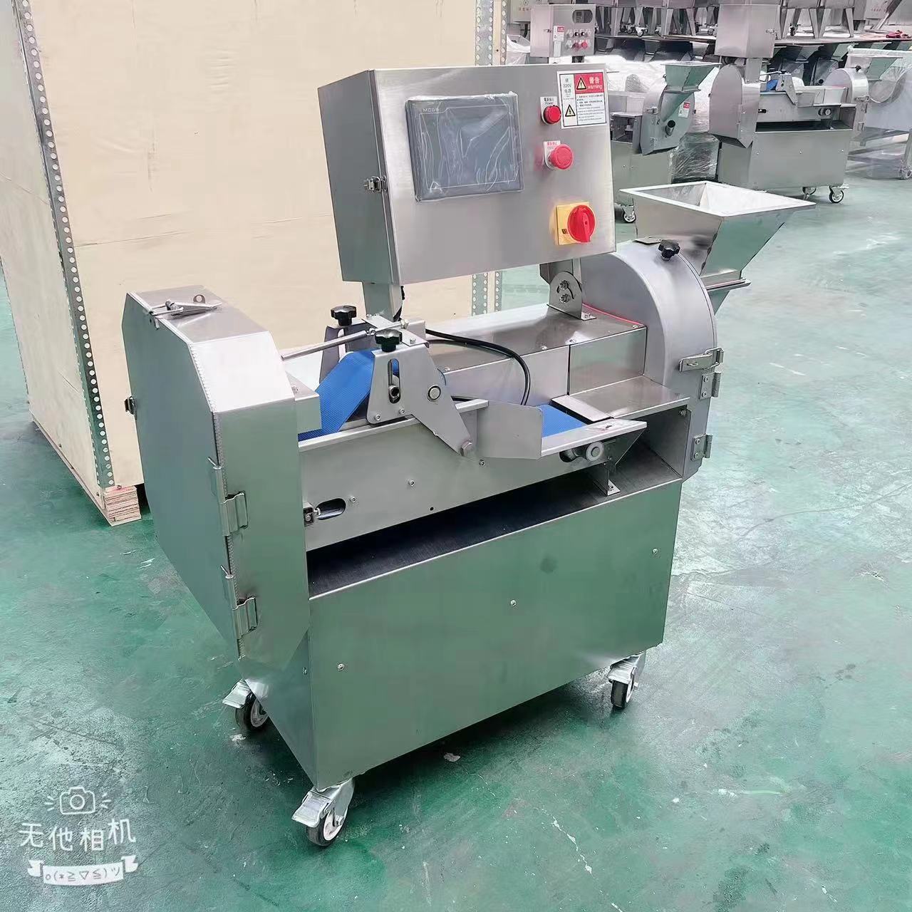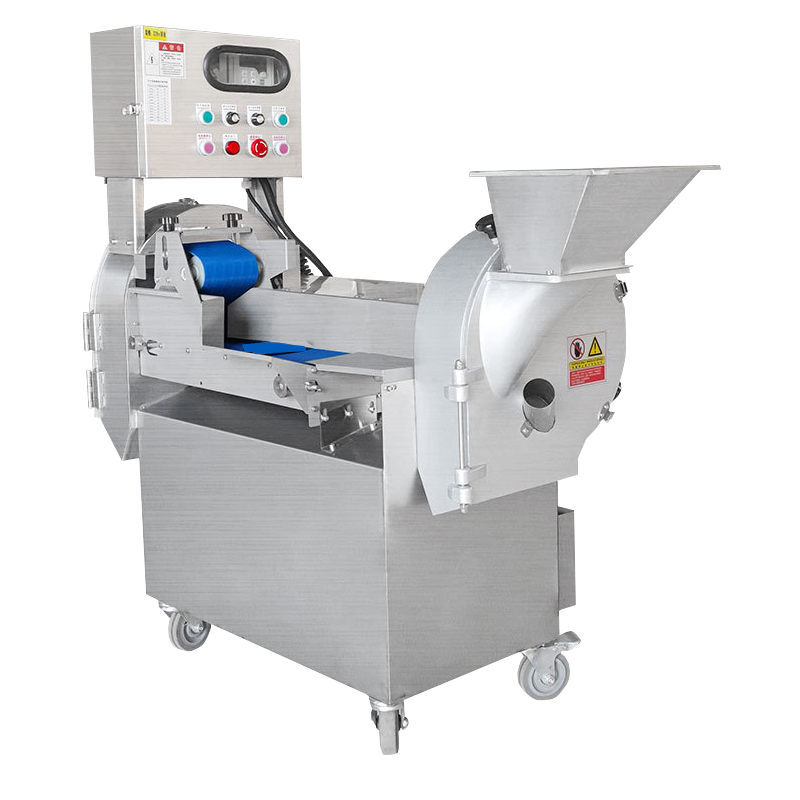 Vegetables are placed on the feeding tray and pushed by the adjustable pusher into the cutting chamber. Driven by a high-power motor, the selected blade (slicing, dicing, or shredding) rotates at high speed. As the pusher moves forward, vegetables come into contact with the blade, and the cut pieces fall directly into the collection bin. The cutting size can be adjusted by replacing blades or regulating the blade spacing, enabling customized output (e.g., 2-20mm slices/dices).