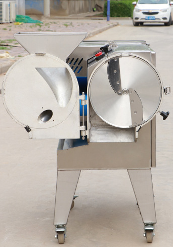 The machine operates via a motor-powered cutting system. Raw materials enter through a hopper, which feeds them into a sealed cutting chamber. Inside, a combination of rotating and fixed blades (with adjustable spacing) slices ingredients into uniform cubes. Dice size is controlled by tuning blade gaps and machine speed via an electrical control panel. Diced products exit through a discharge chute, completing a seamless, automated process tailored to texture and output needs.