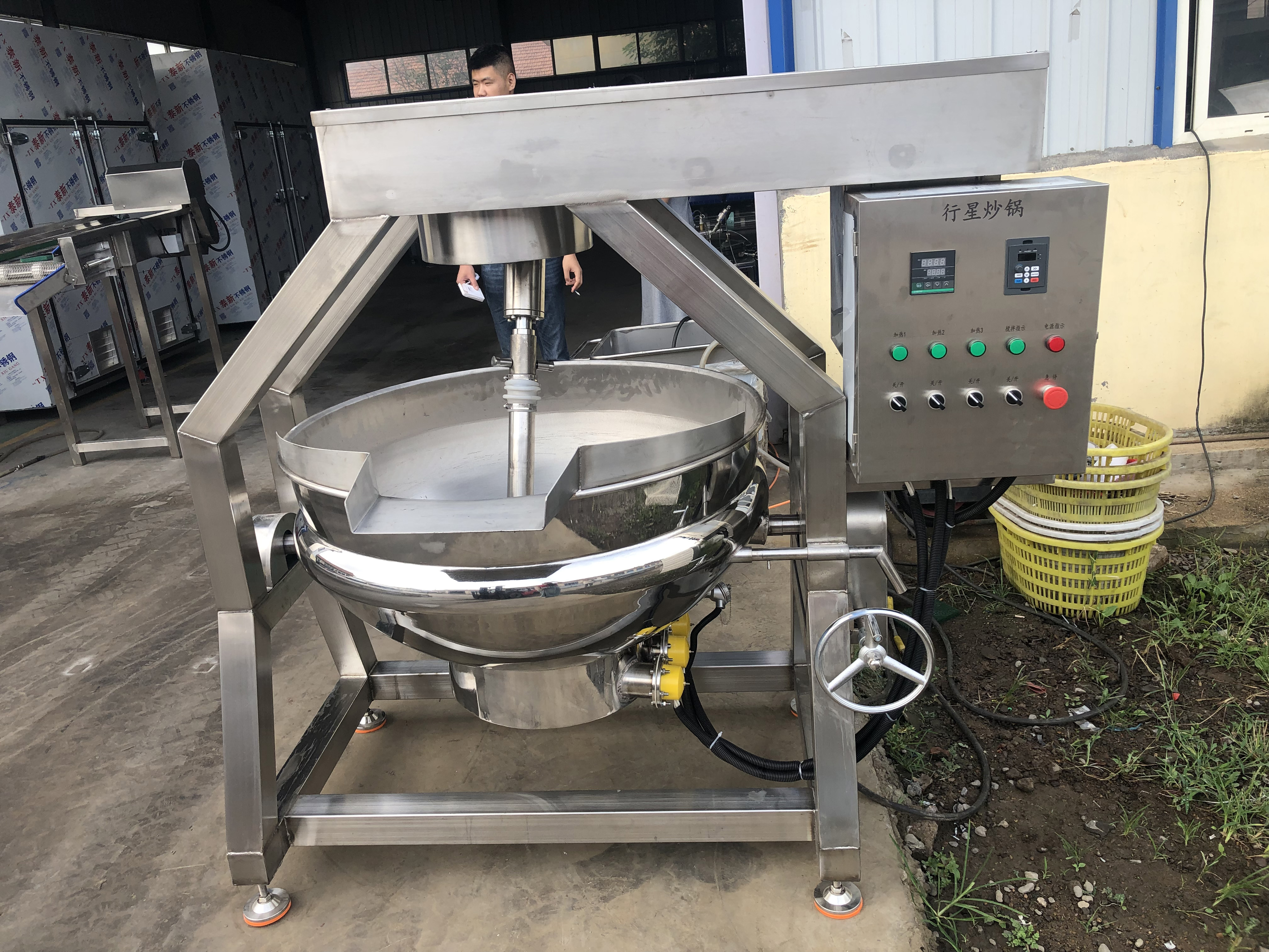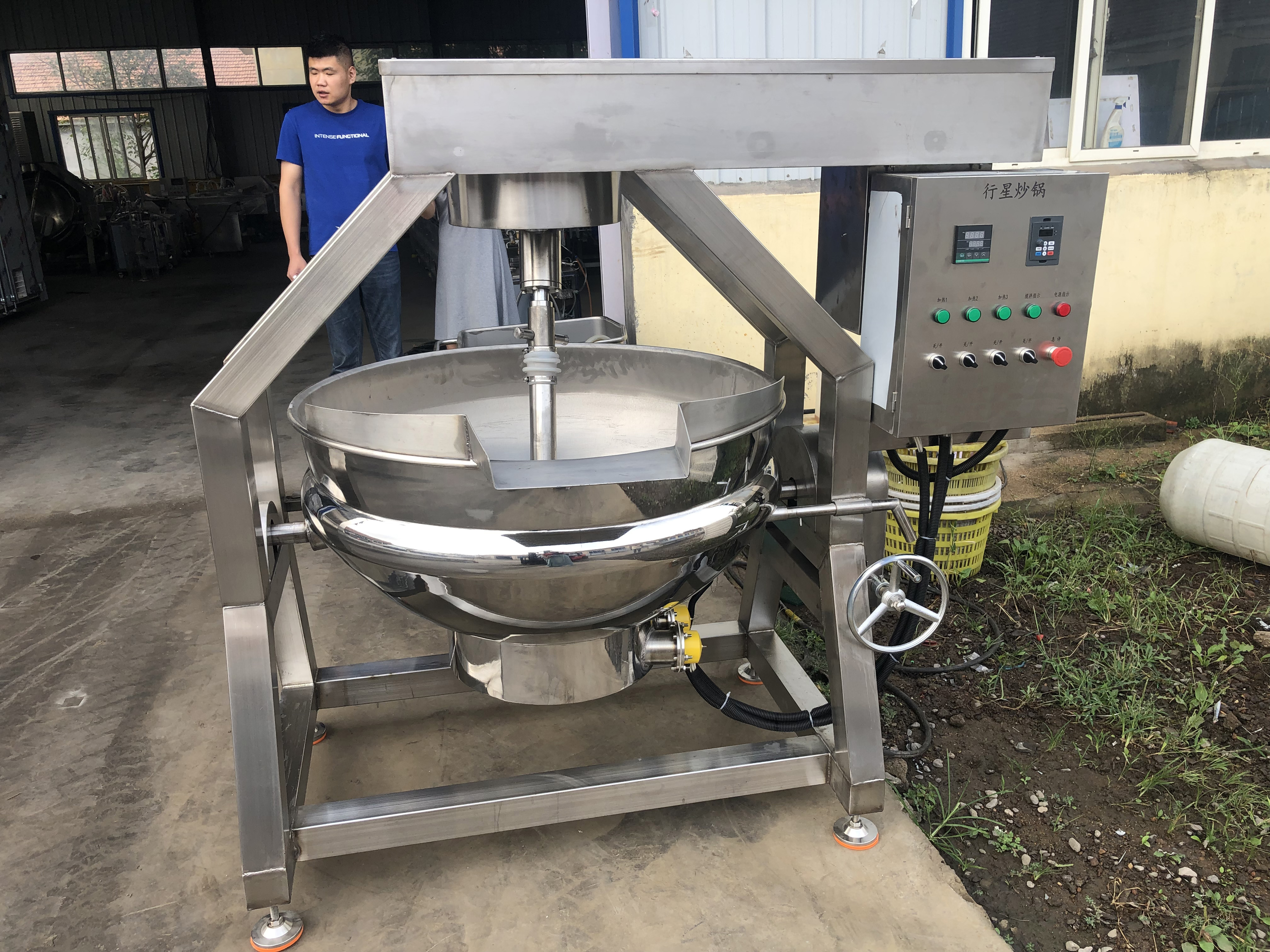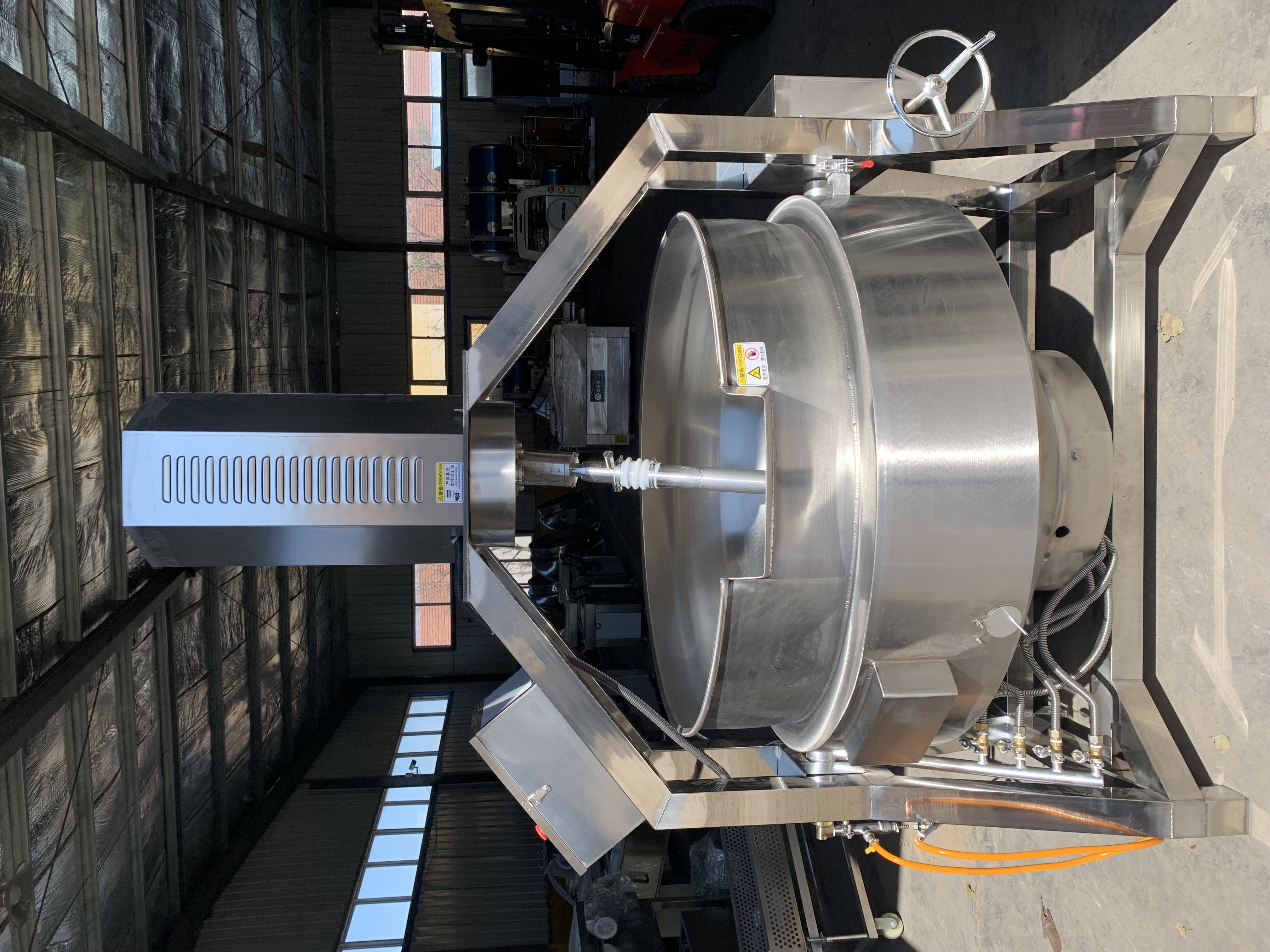 The semi-automatic jacketed kettle features a double-walled vessel: the outer jacket circulates steam or electrical heating medium, transferring heat to the inner pot containing raw materials. A motor-powered mixing paddle rotates at adjustable speeds (typically 10-100 RPM) to thoroughly blend ingredients. Operators control heating temperature (range: 30°C to 250°C), mixing speed, and operation duration via an electrical panel with digital presets. For discharge, the kettle tilts (manually for smaller models, or with gear-driven assistance for larger sizes) to release processed material, facilitating efficient batch-to-batch processing.