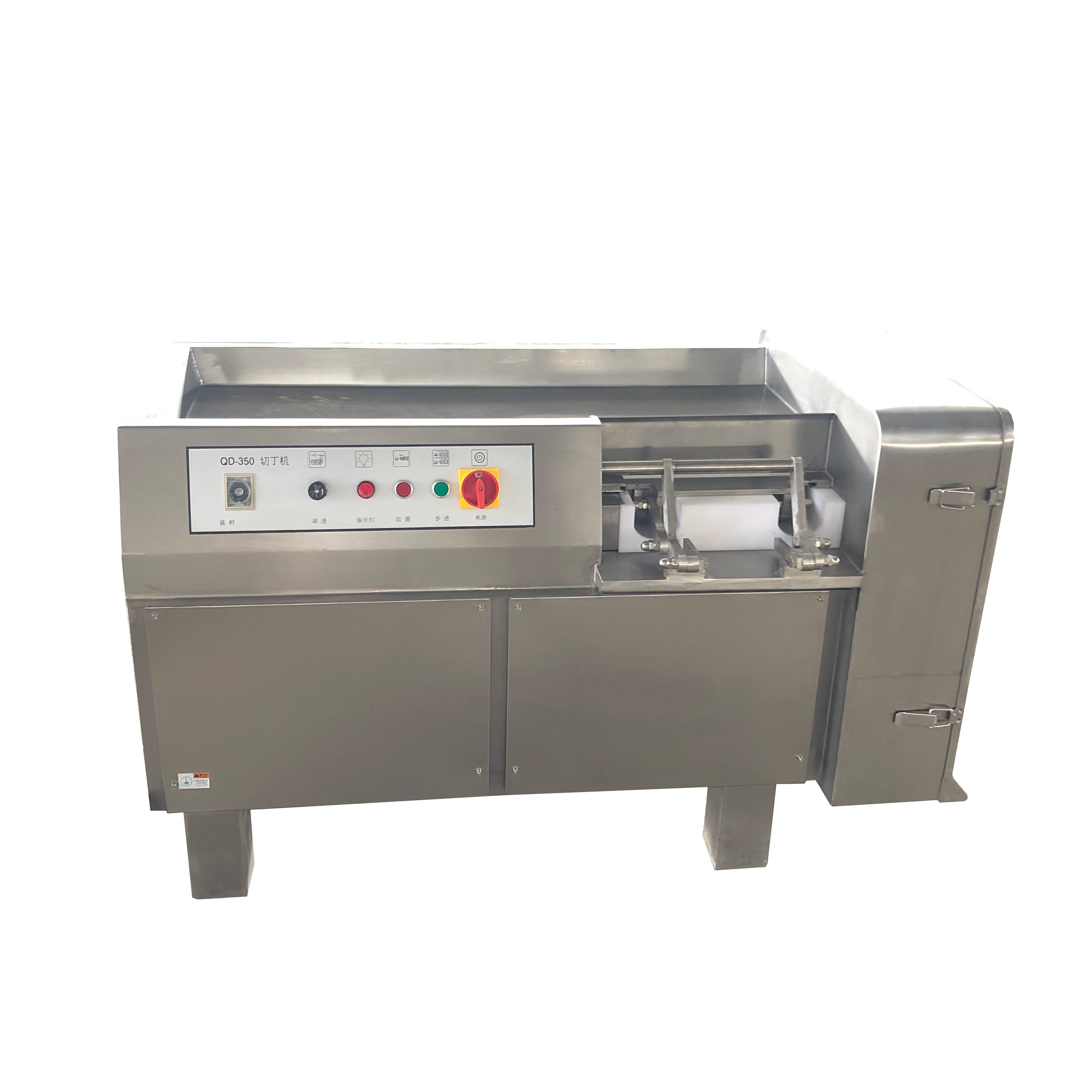 The Dicing Machine operates via a mechanized process to ensure precise dicing. Raw materials (e.g., meat, vegetables, cheese) are loaded onto a feeding mechanism and advanced into a cutting chamber. Here, horizontal and vertical cutting assemblies, driven by high-torque motors, intersect to slice the material into predetermined dice sizes. Operators adjust cutting speed and blade spacing via a digital control system to accommodate different ingredients and desired output dimensions. Diced products are then discharged through a collection chute, minimizing manual handling and ensuring consistent portion control.