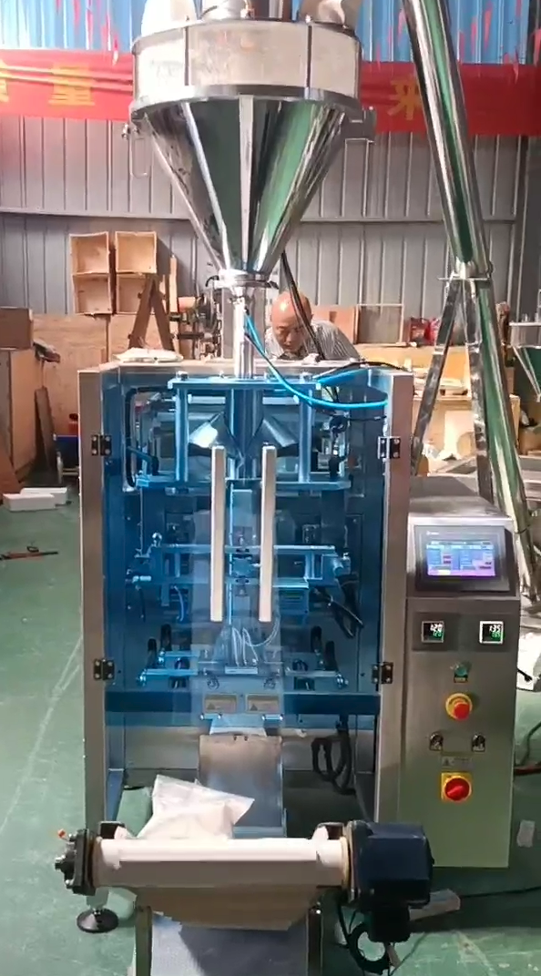 The machine operates via vertical form-fill-seal (VFFS) technology: