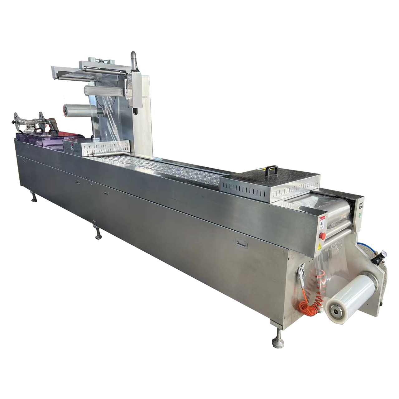 Thermoforming Vacuum Packing Machine is a high-performance solution designed for automated, airtight packaging of various food products. Ideal for international markets, this machine combines thermoforming and vacuum sealing technologies to extend shelf life, maintain freshness, and enhance product presentation. Built with durable stainless steel and advanced control systems, it ensures reliable operation in diverse production environments. Suitable for meat, poultry, seafood, dairy, and ready-to-eat meals, it delivers consistent, professional-grade packaging. Fully customizable to meet different mold shapes and packaging requirements, this machine supports efficient, large-scale production while complying with global food safety standards. Trusted by clients across Africa, the Middle East, Southeast Asia, and South America, it’s engineered for durability, precision, and ease of maintenance—making it the ideal choice for modern food processing businesses worldwide.