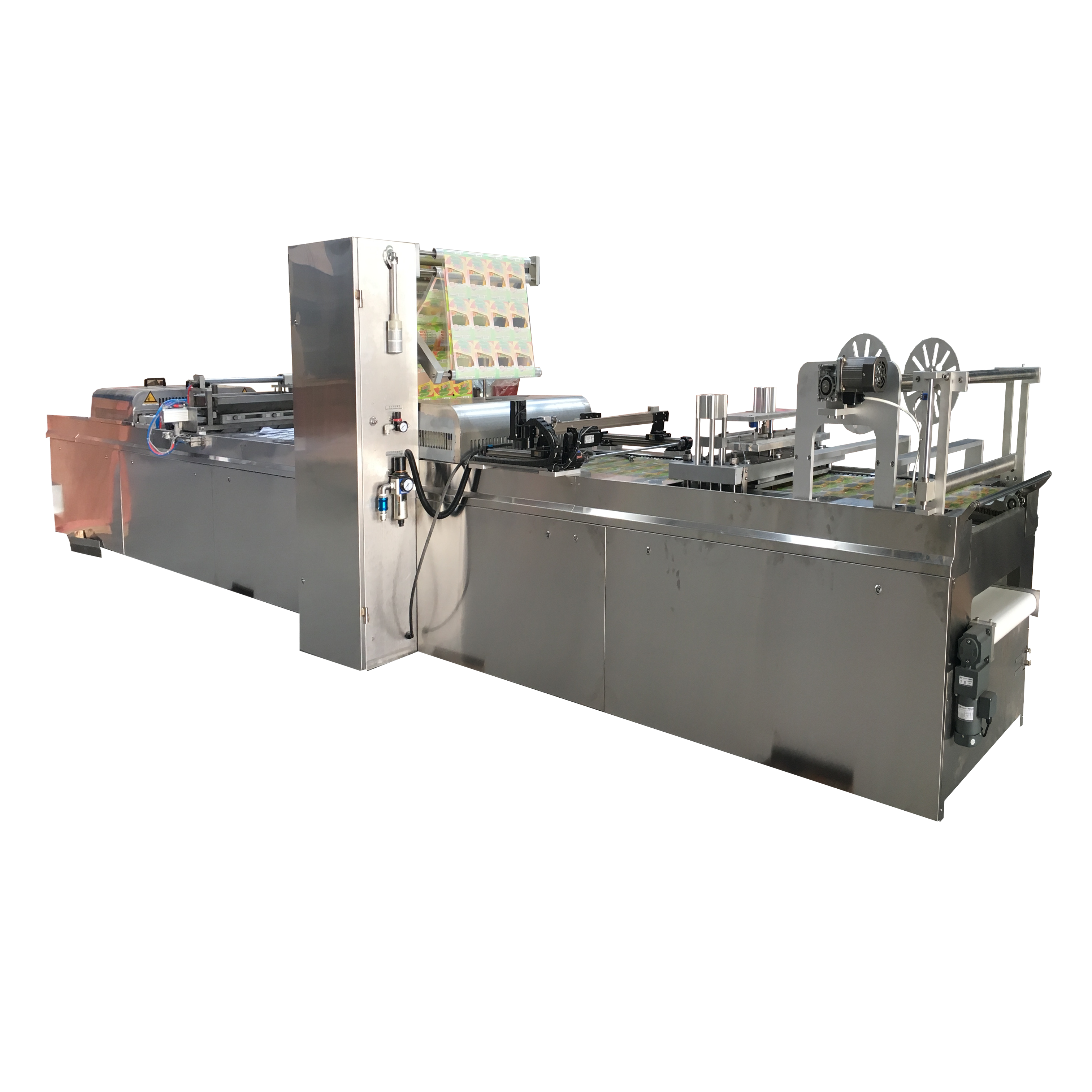 Equipped with PLC control, servo-driven motion systems, and precise temperature regulation, the machine ensures consistent forming and sealing quality. It supports modified atmosphere packaging (MAP) and offers optional nitrogen flushing for sensitive products. All electrical components are from renowned international brands for reliability.
