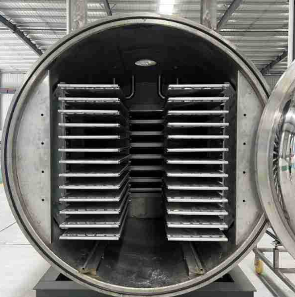 Secondary Drying (Desorption): After the sublimation process, bound water is removed by heating the material under vacuum conditions to achieve the desired final moisture content (1%-4%). The whole process is accurately controlled by the PLC system to ensure uniformity and quality.